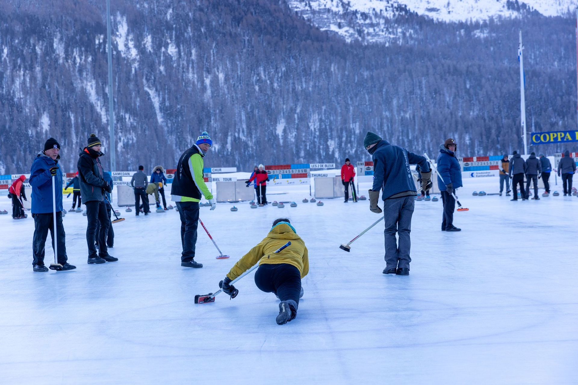 Marienkäfer und Schneemänner auf dem Curlingeis Die 52. Ottenberger-Trophy wurde vom 23.-25. Februar vom Curling-Club Ottenberg-Weinfelden in der Curlinghallte Weinfelen ausgetragen. Drei Curlingtage als Fastnachtsturnier haben ihren festen Platz im Turnierkalender in der Ostschweizer Curlingwelt. Neben den einheimischen Mann- und Frauschaften sind immer gerne auch Bündner Curlingteams mit von der Partie, so zum Beispiel aus Filisur, Savognin und Samedan. Die Bünder Gäste erhalten so neben dem närrischen Curlingplausch auch eine kleine, frühlingshafte Auszeit vom Schnee in den Bergen. 18 Teams spielten um Zentimeter für eine gute Steinplatzierung zum Shot oder einen präzisen Take-Out. Erneut waren wieder ganz tolle Verkleidungen auf dem Eis. Von Bay-Watch (Kostümsieger), über Badeenten, Matadore, Marienkänfer bis zu Schneemännern kämpften Teams um Punkte. Auch Schwinger schwangen den Curlingbesen. Neben der Konzentration während dem Spiel ist danach das ausgelassene Beisammensein ebenso wichtig. Der Maskenball und der Guggen-Einsatz der Rungglä-Süüder Frauenfeld sorgten für fastnächtliche Stimmung und Bewegung in den Curlingbeinen. Dank dem Sieg aller fünf Spiele hat das Team ABCD1 (Alvaneu Bad Curling Division) mit dem Routinier Jacqui Greiner kostümiert als Disco-Boys den ersten Rang erspielt. Auf Rang zwei konnten sich die Badeenten mit Skip Markus Fässler (Präsident der Genossenschaft Curlinghalle Weinfelden) platzieren. Der 3. Rang ging an die Matadoren vom Curling Club Ottenberg-Weinfelden 1 mit Skip Peter Hübner – Olé ! Das tolle Rahmenprogramm des Fastnachtsturniers sowie die schönen Preise sind nur dank den vielen grossen und kleinen Sponsoren möglich, unter anderem FMS-Druck AG, Raiffeisenbank, Lidl und Tilsiter. Curling gibt es aber natürlich nicht nur zur Fastnachtszeit – der Spielbetrieb in der Curlinghalle Weinfelden läuft noch bis Ende März. Alle sind herzlich eingeladen, zu schnuppern oder einen Rink für einen Plausch-Anlass zu mieten. 28.02.23 Autor: Helmut Reif