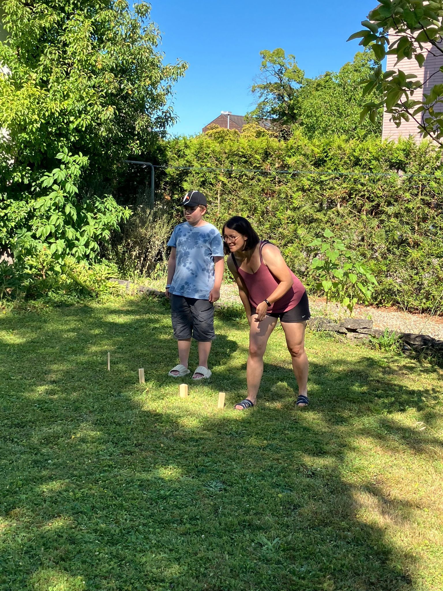 Am Samstag, 28. Juni trafen sich die Juniors des CCThurgau zum traditionellen Sommeranlass. Bei strahlendem Sonnenschein und so gar nicht curlerischen Temperaturen trudelten ab 13 Uhr die Ersten ein. Der frisch gemähte Rasen eignete sich bestens für Fussball, Krocket, Kubb und andere Aktivitäten wie Wasserschlachten. Auch das Kulinarische kam nicht zu kurz: der Grill lief während Stunden heiss. Beim Curlingquiz, das in Gruppen und am Schatten gelöst wurde, konnten alle ihr Fachwissen unter Beweis stellen. Dabei lernten die Jüngeren einiges von den Älteren. So durften am Schluss alle ihr wohlverdientes Glace geniessen.