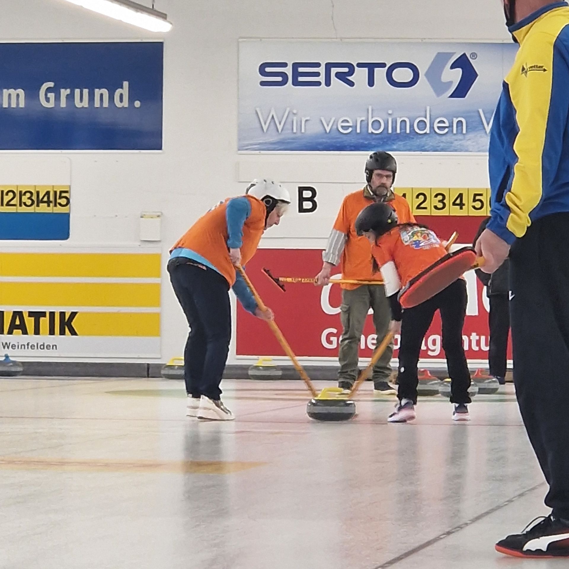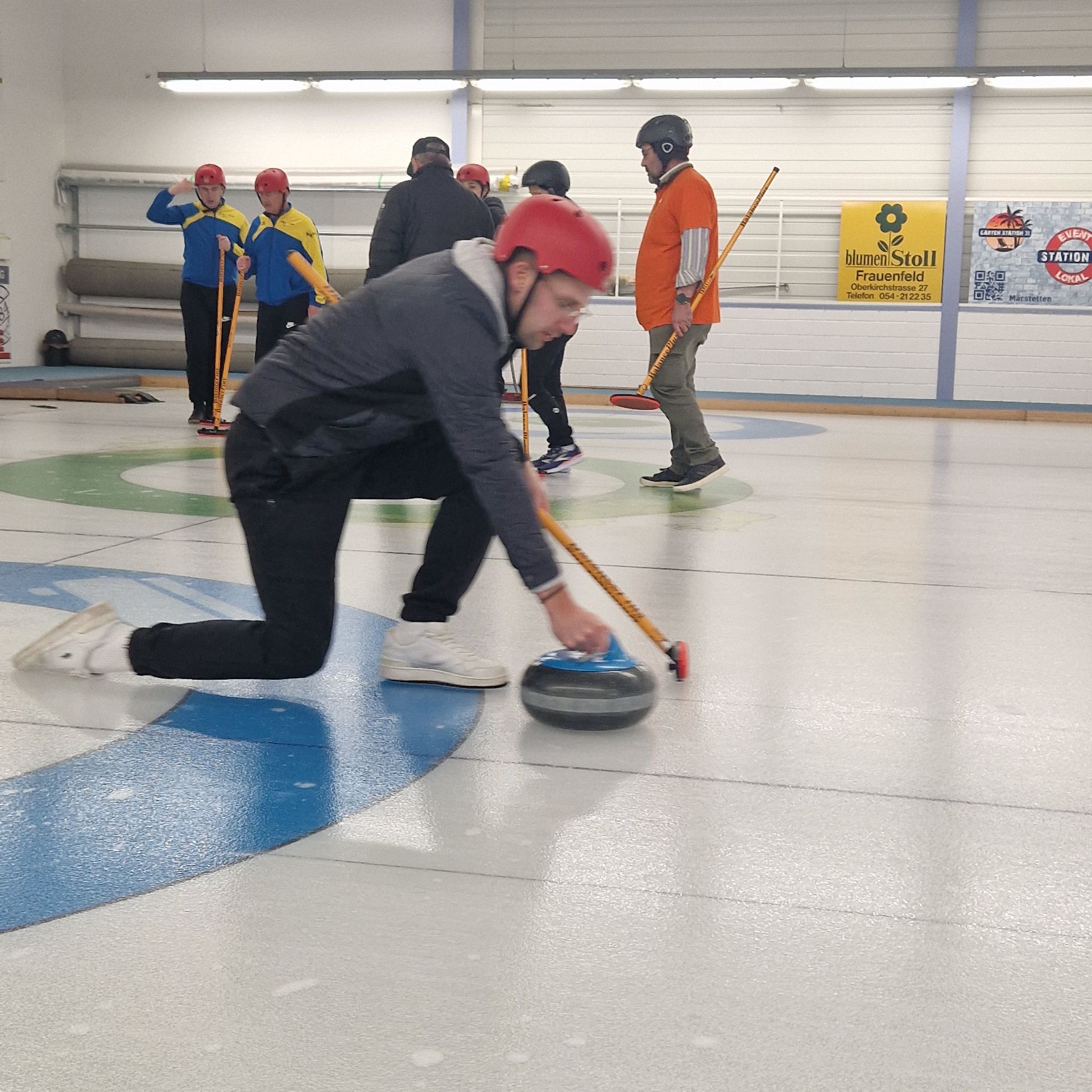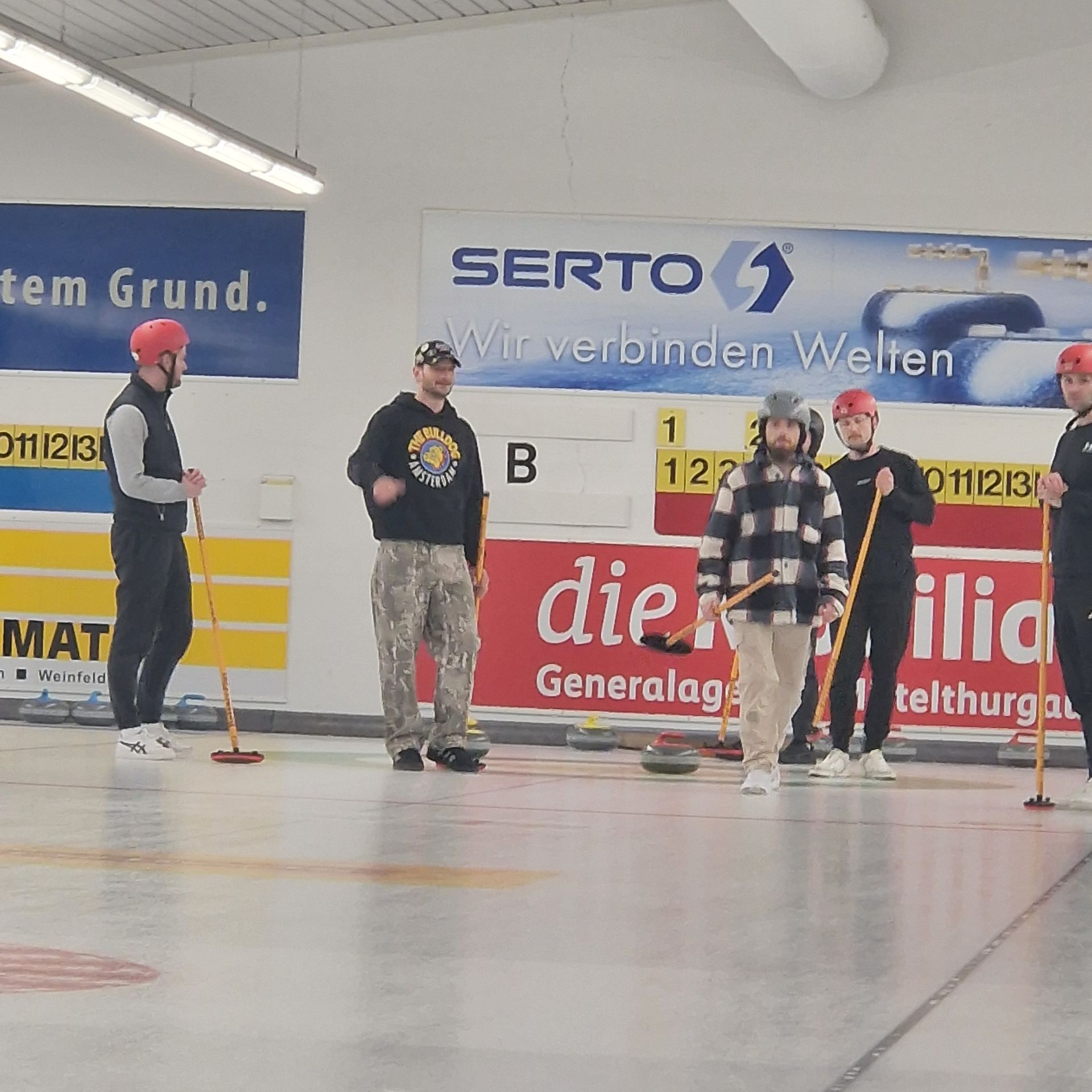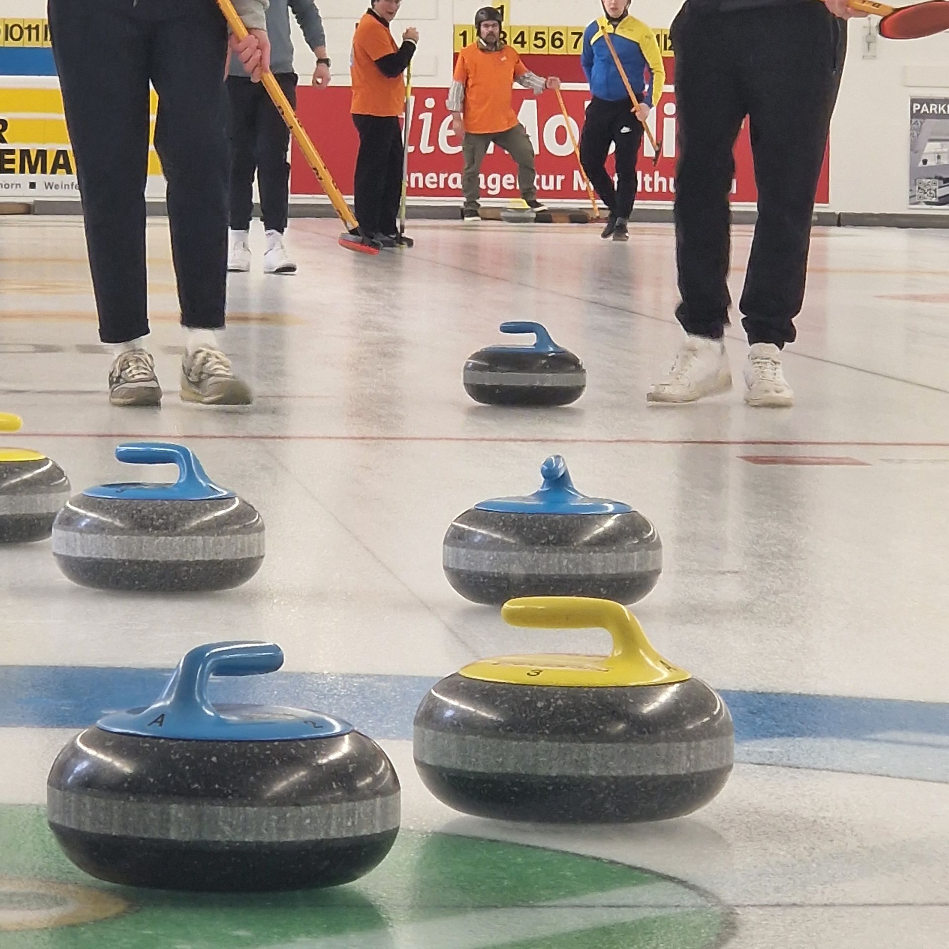 Für den Samstag 21. März 2026 haben sich 8 Teams zum 35. Weinfelder Plauschcurling-Turnier angemeldet. Pünktlich um 8:30 konnte das Turnier gemäss Spielplan gestartet werden. Wieder einmal ist es gelungen, 32 Teilnehmer vom Curling spielen zu begeistern. Mit viel Elan, Freude, Ehrgeiz und vor allem unfallfrei bis zum letzten spannenden Spiel. Wie die Schlussrangliste zeigt, mussten Zuschauer wie Spieler bis zum letzten gespielten Stein ausharren, bis das Siegerteam feststand.