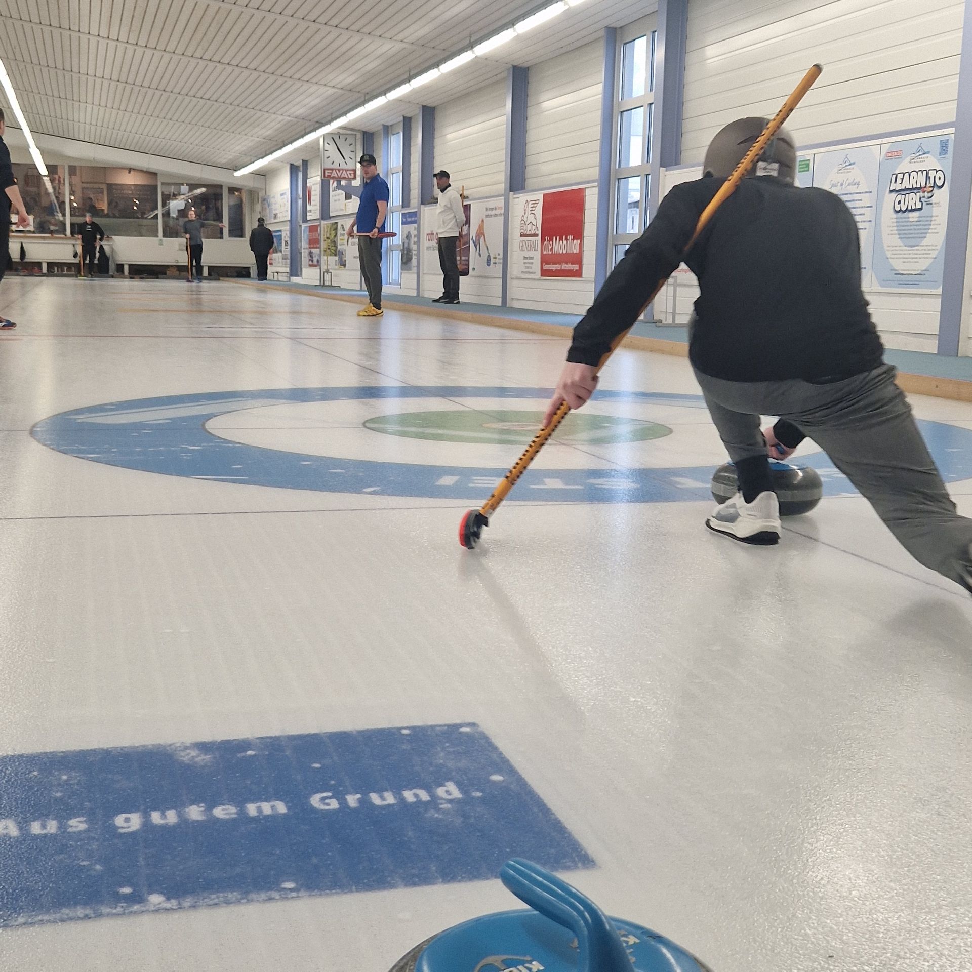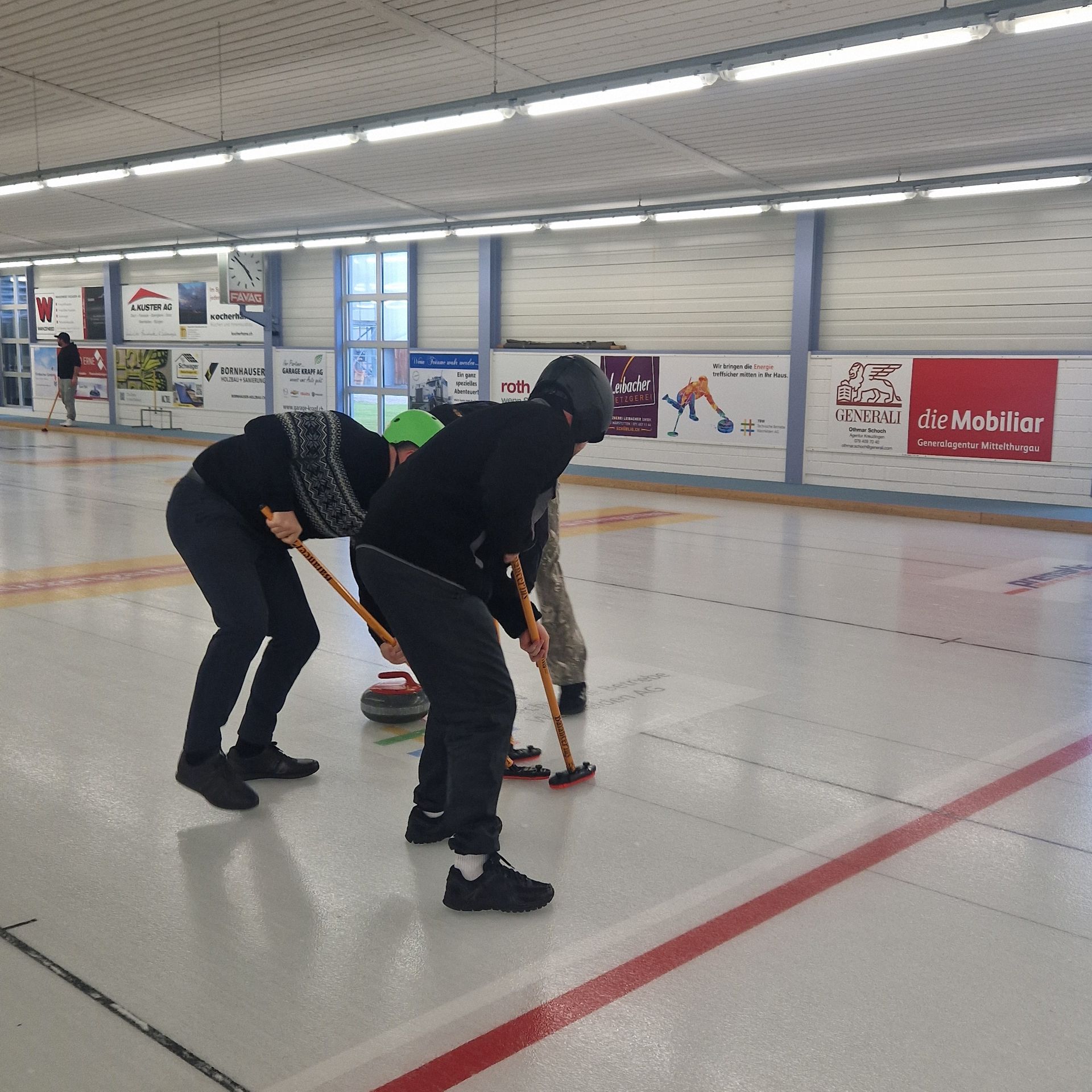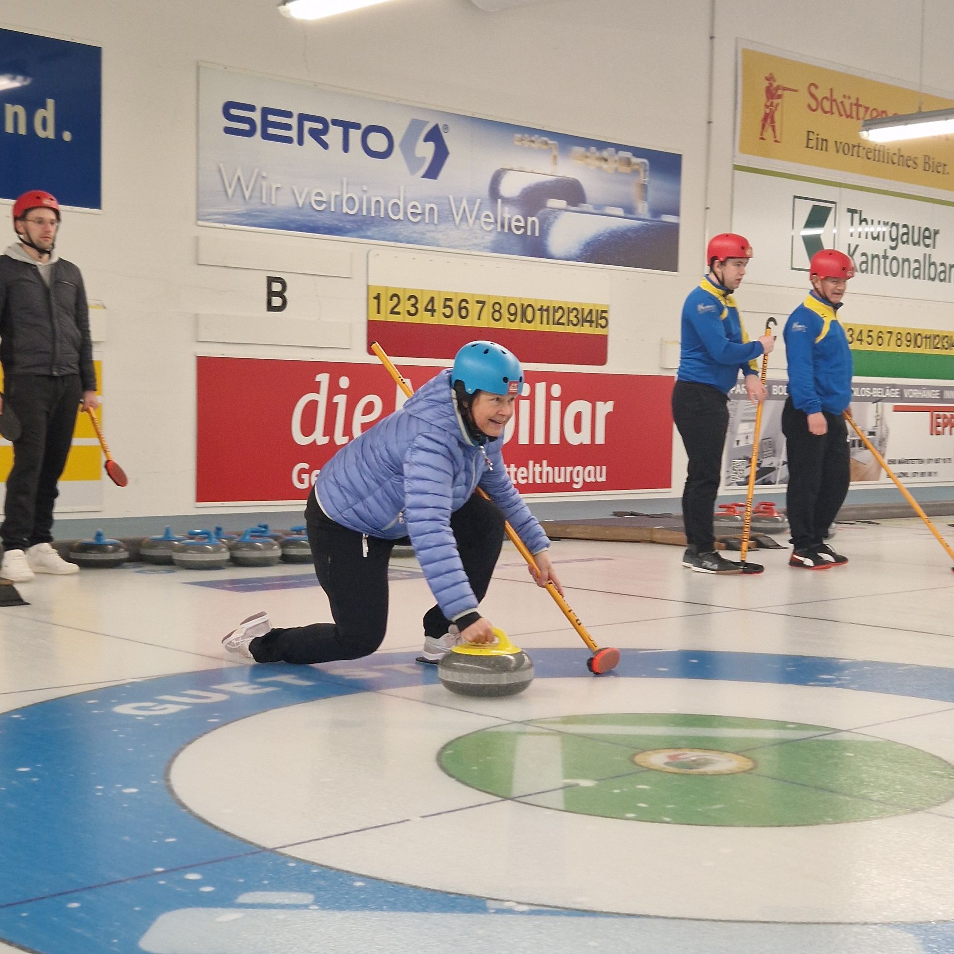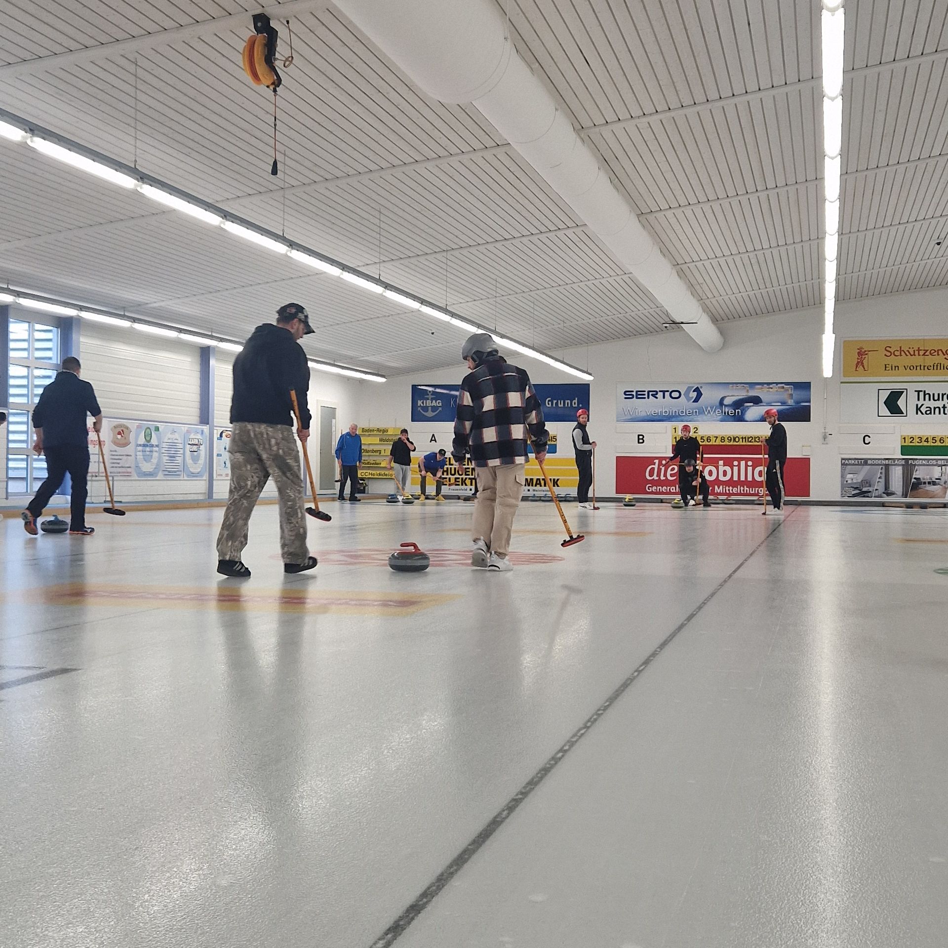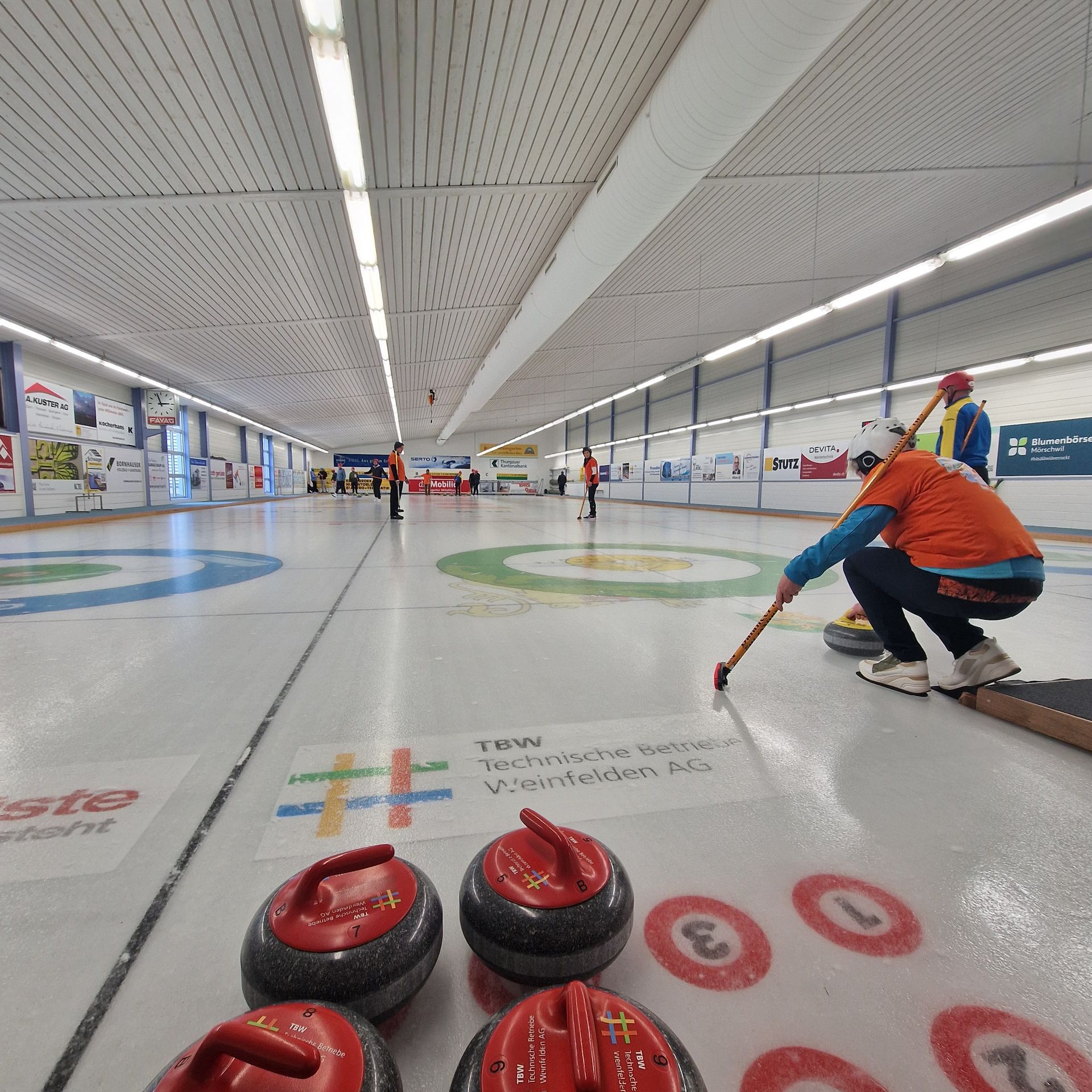 Für den Samstag 21. März 2026 haben sich 8 Teams zum 35. Weinfelder Plauschcurling-Turnier angemeldet. Pünktlich um 8:30 konnte das Turnier gemäss Spielplan gestartet werden. Wieder einmal ist es gelungen, 32 Teilnehmer vom Curling spielen zu begeistern. Mit viel Elan, Freude, Ehrgeiz und vor allem unfallfrei bis zum letzten spannenden Spiel. Wie die Schlussrangliste zeigt, mussten Zuschauer wie Spieler bis zum letzten gespielten Stein ausharren, bis das Siegerteam feststand.
